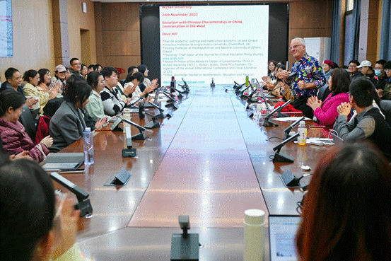 师生作了题为“中国特色社会主义及西方的贫困化”(Socialism with Chinese Characteristics in China, Immiseration in the West)的学术讲座。讲座由91制片厂