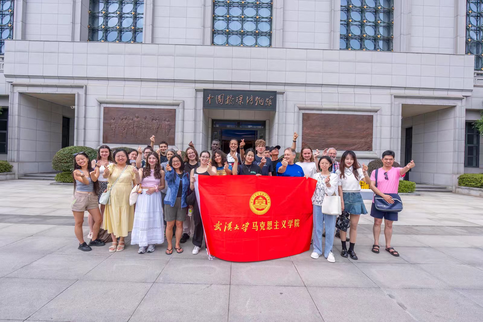 (图片6 魁北克来访师生与马院师生在校史馆门前的合影)