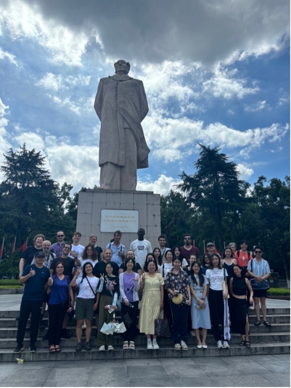夕阳西下,文化之旅缓缓落下帷幕,一行人启程前往长沙,开展了为期三天的研学活动。师生们在岳麓书院感受了古朴的建筑、悠静的庭院,了解并学习了中国的古代教育制度与习俗;在靖港古镇,青石板路、古桥流水、老宅深巷,每一处都散发着浓厚的历史气息,大家漫步在古镇的街头巷尾,感受着这里独有的宁静与祥和。站在橘子洲头,眺望着湘江两岸的壮丽景色,并学习了这里不仅是观赏美景的绝佳之地,更是中国近现代历史的重要见证,了解了毛泽东等伟人在这片土地上的奋斗历程,对中国的近现代历史有了更加清晰的认知。在湖南博物馆感受湖南地区悠久的历史和灿烂的文化,从精美的青铜器到绚丽的陶瓷,从古老的书画到神秘的帛画,每一件文物都诉说着过去的故事;特别是马王堆汉墓出土的文物,让同学们对古代中国的丧葬文化和工艺技术有了全新的认识,精美的丝绸制品和保存完好的尸体,大家纷纷惊叹于古人的智慧和技艺。此次长沙之行,师生们不仅亲身体验了中国的传统文化与现代发展的完美交融,还对中国的历史与文化有了更加深入的了解和认识。