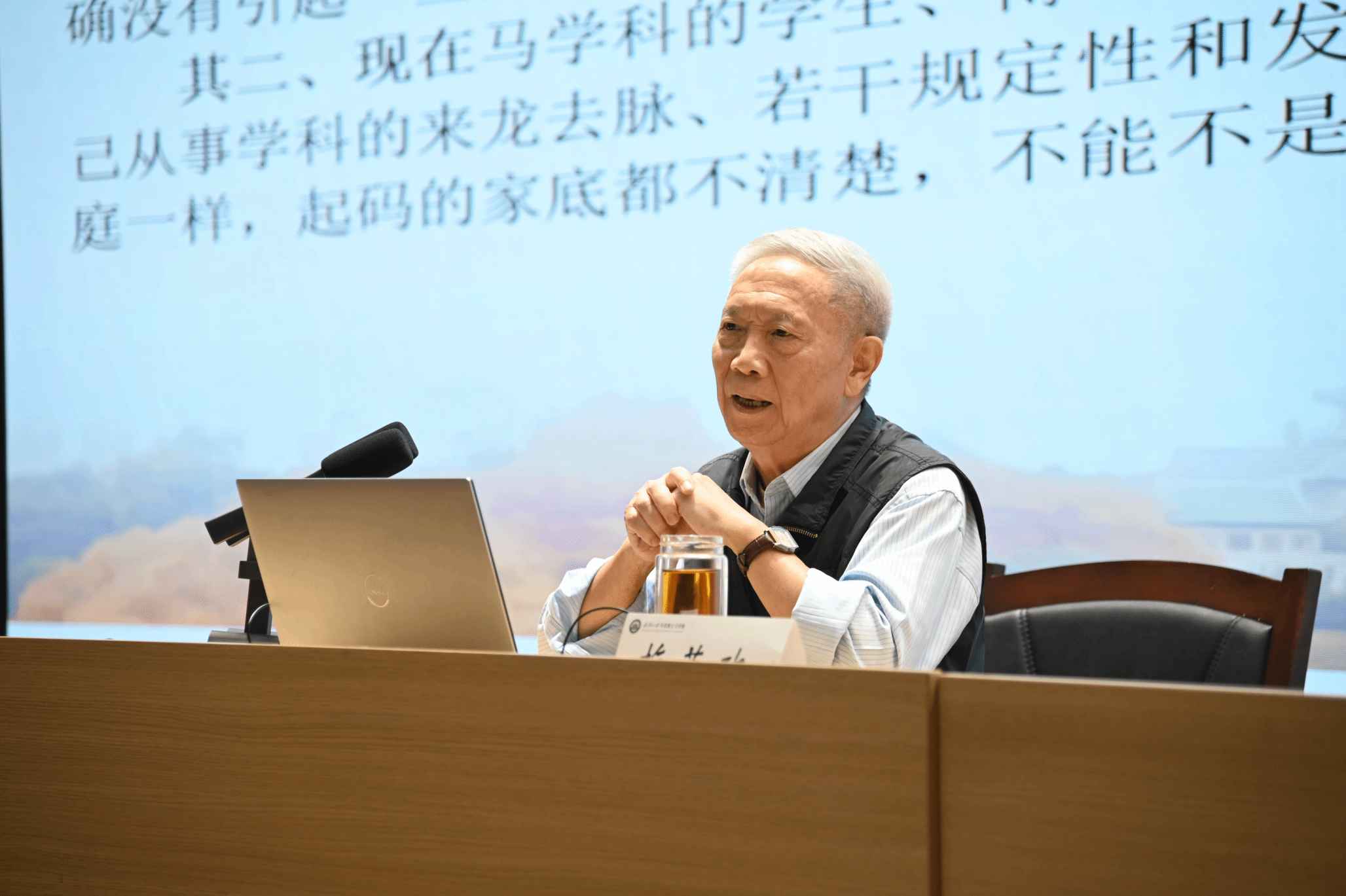梅教授从历史回顾、发展状况与基本经验、未来建设三个方面,非常详细地介绍了我国马克思主义理论学科的创建和发展过程,并分享了他对马学科未来建设方向的思考。