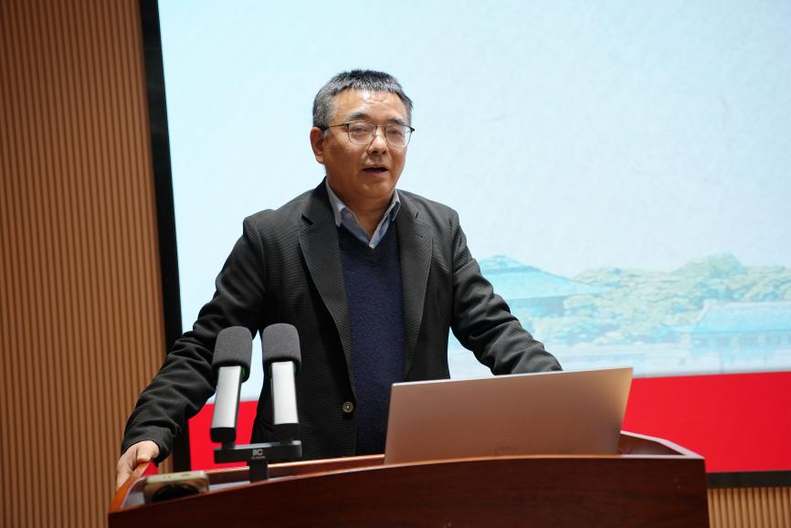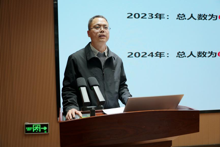 罗永宽院长做年终工作总结报告。他从“以党纪学习教育为重点,推进管党治院向纵深发展”“以讲好思政课为第一要务,推动思政课守正创新”“以建设一流学科为使命,构建学科建设新格局”“以人才队伍为支撑,筑牢人才‘蓄水池’”“以‘人才培养年’为落脚点,开创学生培养新模式”“以国内国际‘双循环’为驱动力,国际交流与国内合作‘双向奔赴’”六个方面对学院过去一年的工作进行了总结,并系统性地介绍了2024年学院事业发展十大亮点。
