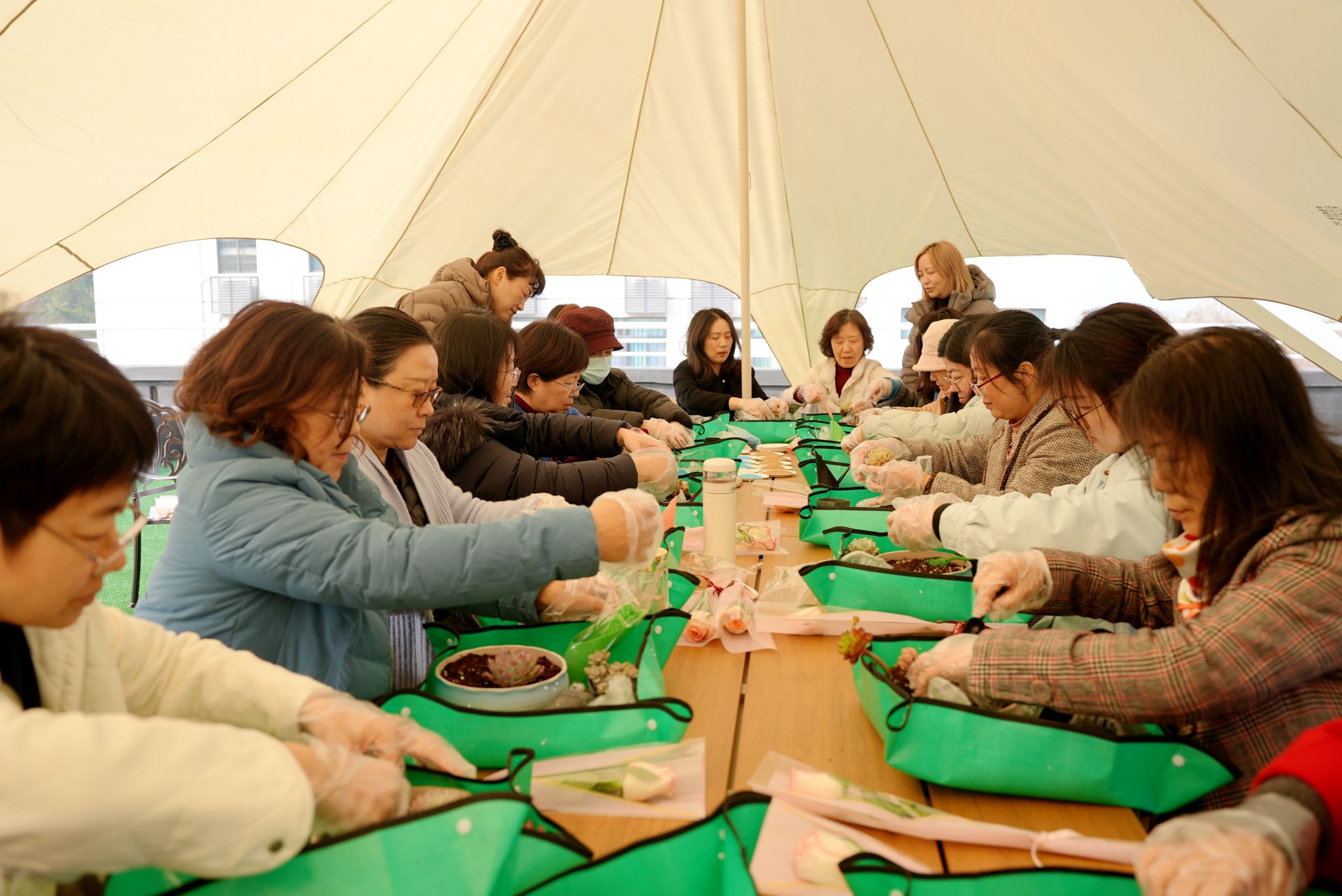 “亲手制作微景观既解压又有成就感,天台的阳光和绿植让人心情格外舒畅!”参与活动的老师表示。此次活动不仅让女教职工们体验了园艺手作的乐趣,更在交流协作中增进了彼此的情感,展现了学院教职工热爱生活、积极向上的精神风貌。