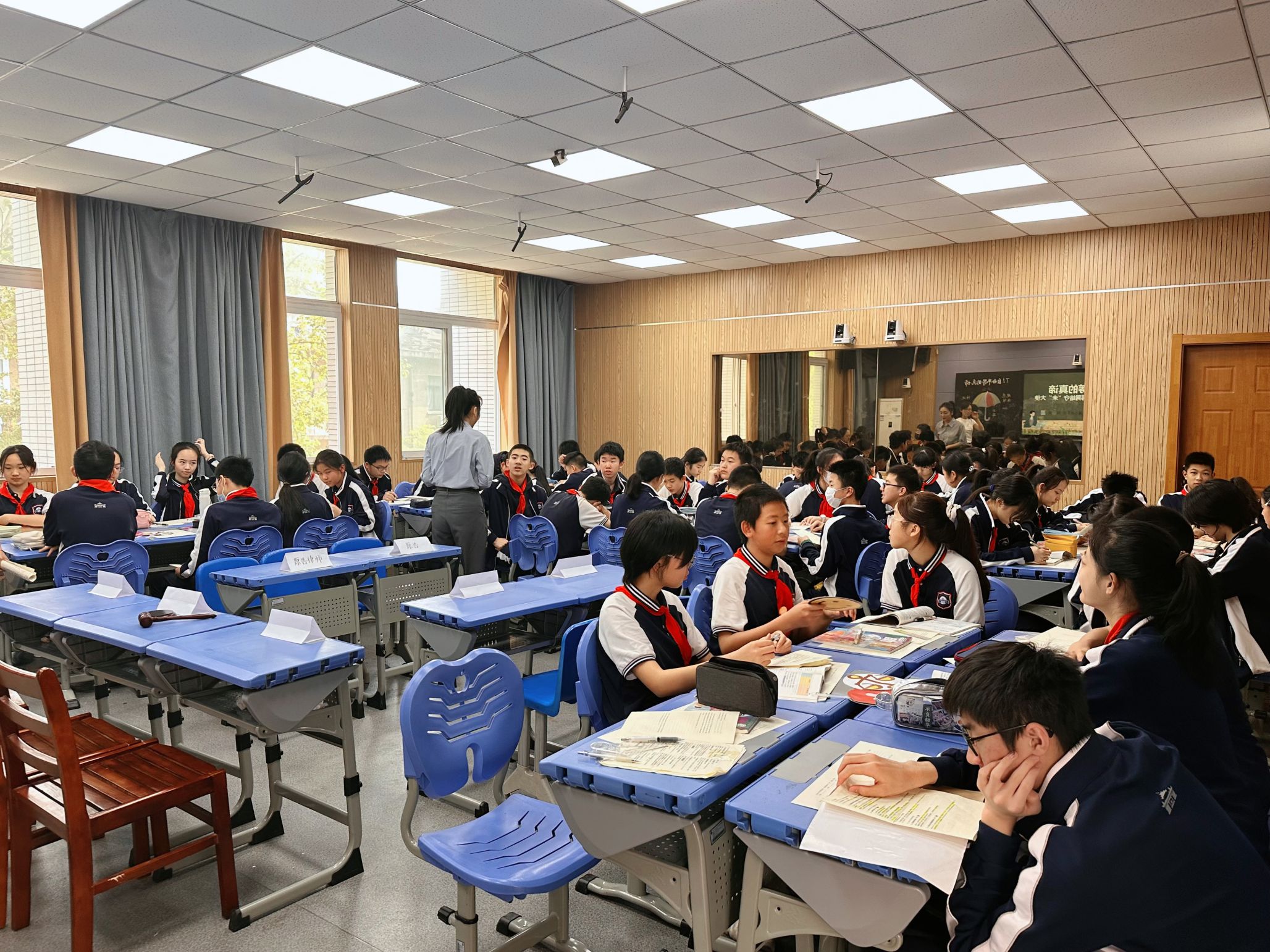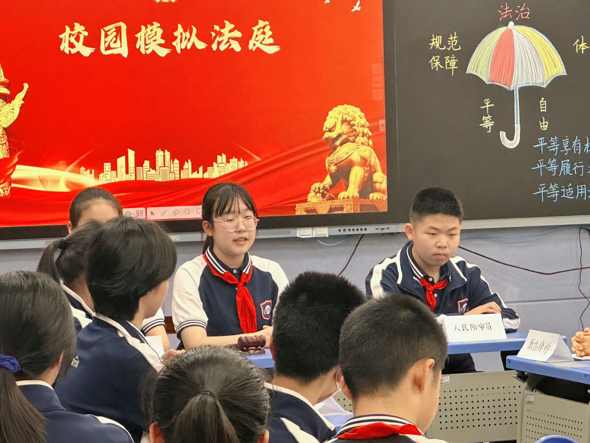 附属中学陈炎炎老师的课堂上,45名初二学生通过“模拟立法听证会”的形式,围绕“校园手机使用管理”展开辩论。同学们分别扮演人大代表、家长代表、学生代表等角色,在张老师的引导下,结合《宪法》第三十三条“公民在法律面前一律平等”、第五十一条“行使自由和权利不得损害公共利益”等条款进行观点交锋。