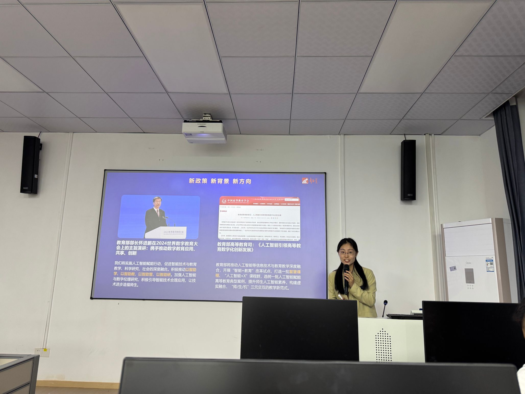 2025年4月23日晚上,AI数智技术赋能思政课程建设专题培训会在314实验中心(云教室)举办。本次活动以智慧课程建设、AI工具使用等为主题,通过理论阐释、案例剖析、实操演练三维度,系统展示了AI技术在课程设计、教学实施、教学资源建设等领域的创新应用。本次培训由学院教师发展分中心和武汉超星联合组织,91制片厂