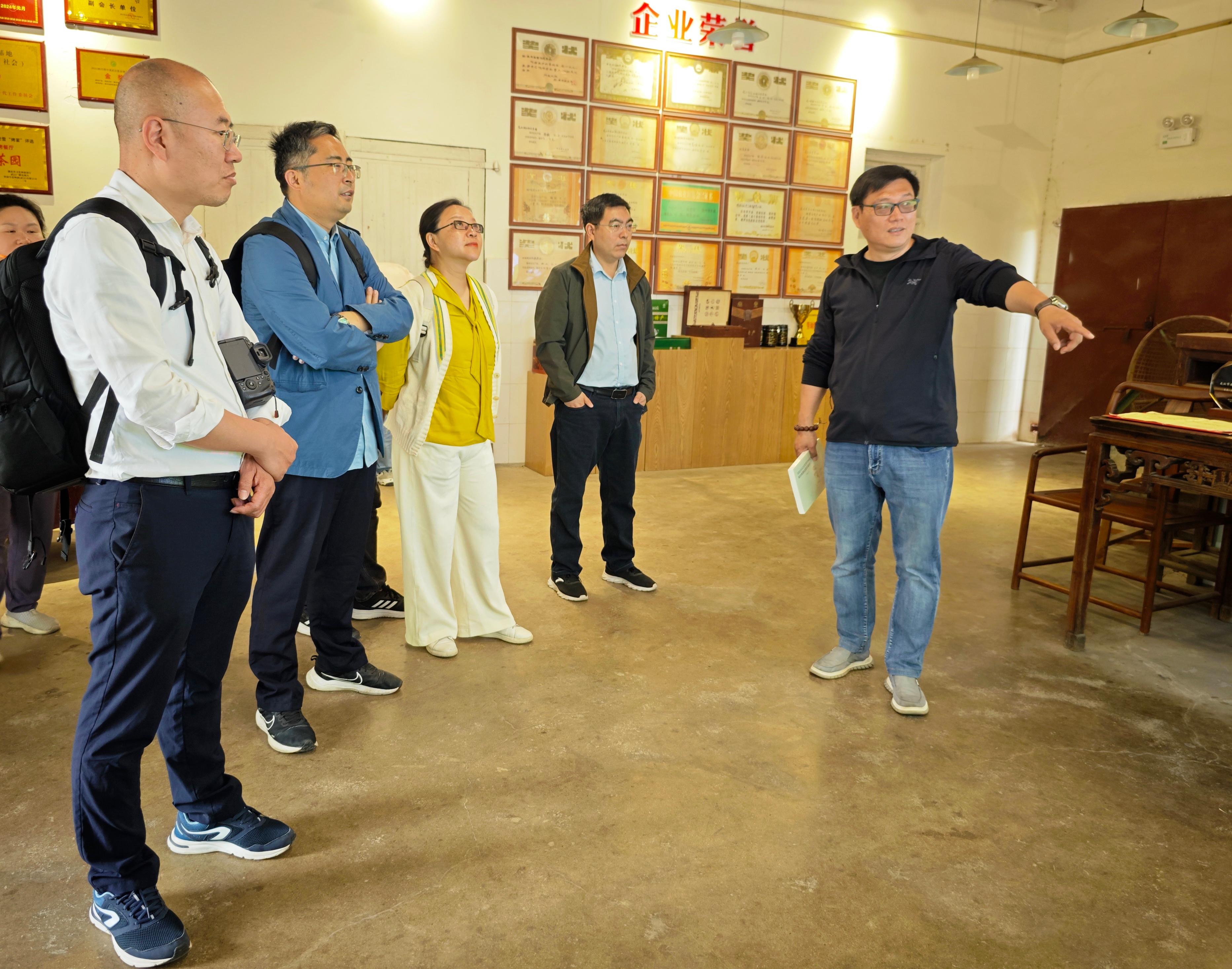 在湖北柏泉茶园科技有限公司董事长胡建明的带领下,一行先后参观了柏泉茶厂博物馆和柏泉生态茶园。据胡建明董事长介绍,近年来“柏泉有茶”等研学基地精心打造了“微研学”产品矩阵,不断拓展茶文化的传播渠道;开展了茶叶扎染、茶皂制作等手工艺工坊活动,成功孵化出“二十四节气茶染丝巾”等热门文创产品。基地还开设“茶与宋代美学”“茶叶中的化学密码”等相关主题讲座,使参与者领略中华茶文化的博大精深。