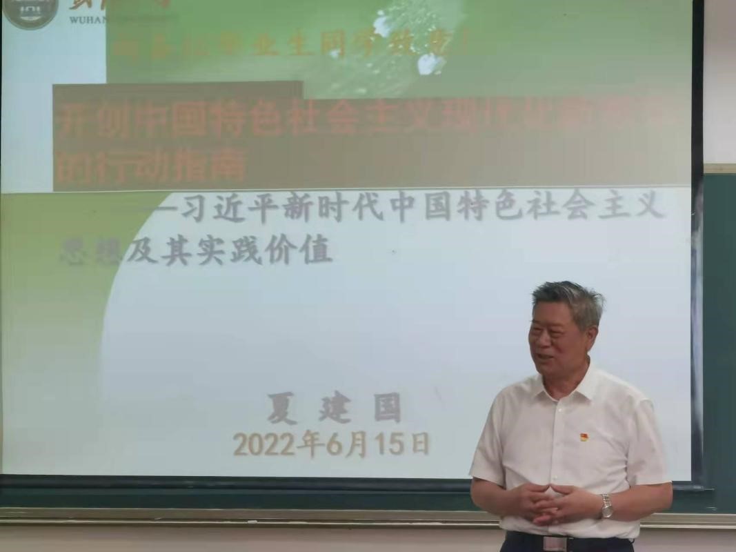 夏建国教授以“开创中国特色社会主义现代化新篇章的行动指南——习近平新时代中国特色社会主义思想及其实践价值”为题,从为什么、学什么、怎么学三方面解读了习近平新时代中国特色社会主义思想,为与会毕业生党员代表带来一场极富教育意义的专题党课。在场的毕业生党员认真聆听,纷纷表示有收获、有感悟。