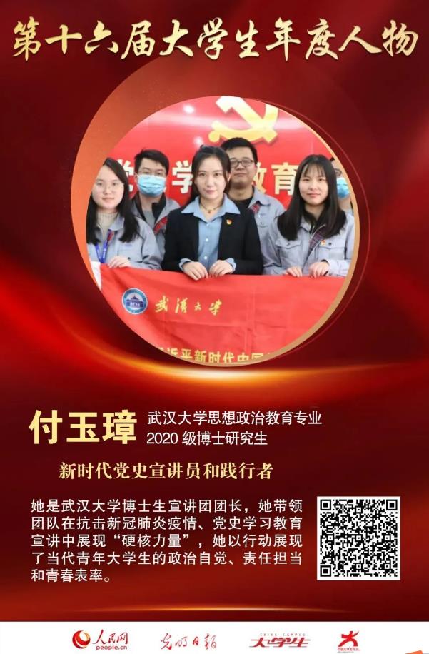 2020级博士研究生付玉璋荣获第十六届“大学生年度人物”荣誉称号!