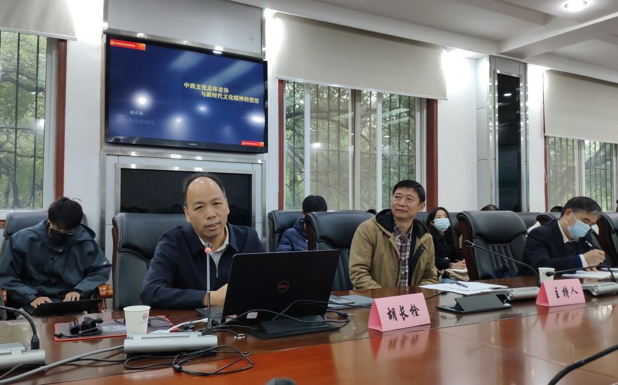1020日下午,马克思主义与当代中国论坛之一百五十七讲在学院M218会议室举行。中央党史文献研究院科研规划部副主任、研究员胡长栓应邀面向师生作了题为“中西文化总体差异与新时代文化精神的塑造”的学术讲座。本次讲座由佘双好教授主持,相关专业教师及硕博研究生参加了会议。