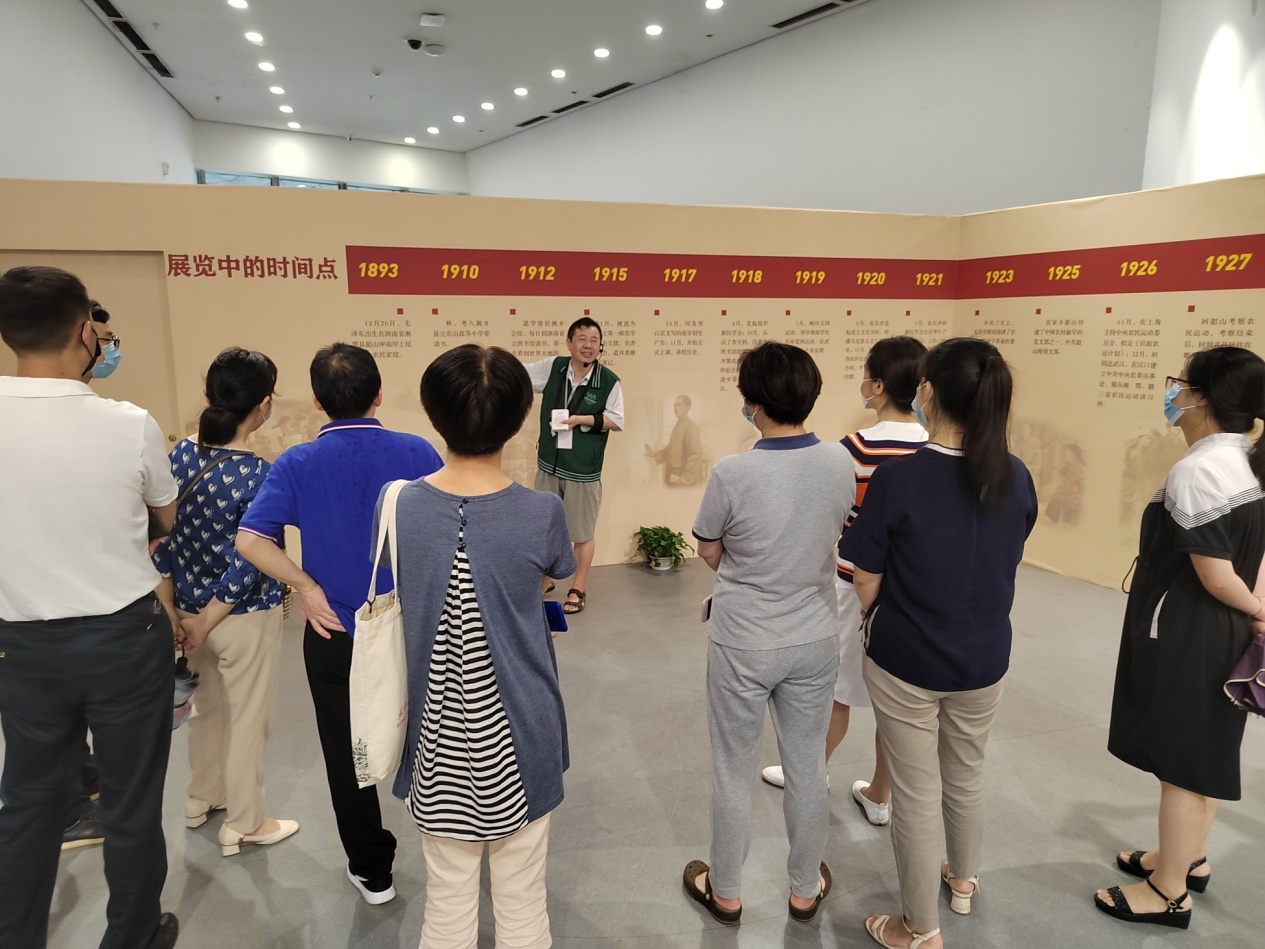 2021年7月8日下午,91制片厂 机关党支部开展主题党日活动,学院党委副书记秦后国、孙燕带领机关党支部全体党员于万林博物馆参观了“东方欲晓——毛泽东主席艺术形象主题展”。