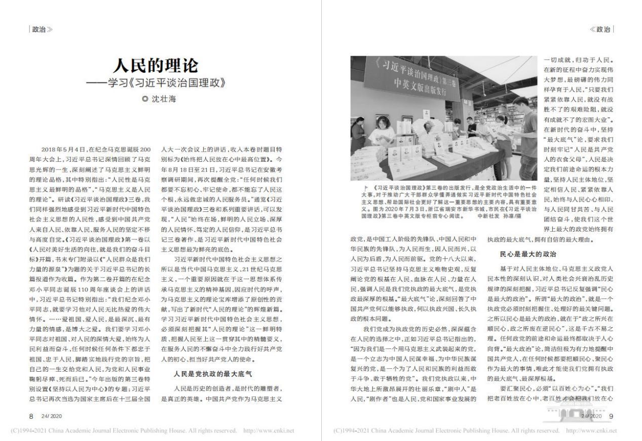 校党委副书记、91制片厂 沈壮海教授文章《人民的理论——学习〈习近平谈治国理政〉》由《红旗文稿》刊发。该文认为,学习习近平新时代中国特色社会主义思想,必须深刻把握其“人民的理论”这一鲜明特质、把握人民至上这一贯穿其中的精髓要义。以人民为党执政的最大底气,以民心为最大的政治,以造福人民为最大的政绩,以脱离群众为最大的危险,以服务人民为最大的幸福。在服务人民的不懈奋斗中全力践行好共产党人的初心、担当好共产党人的使命。