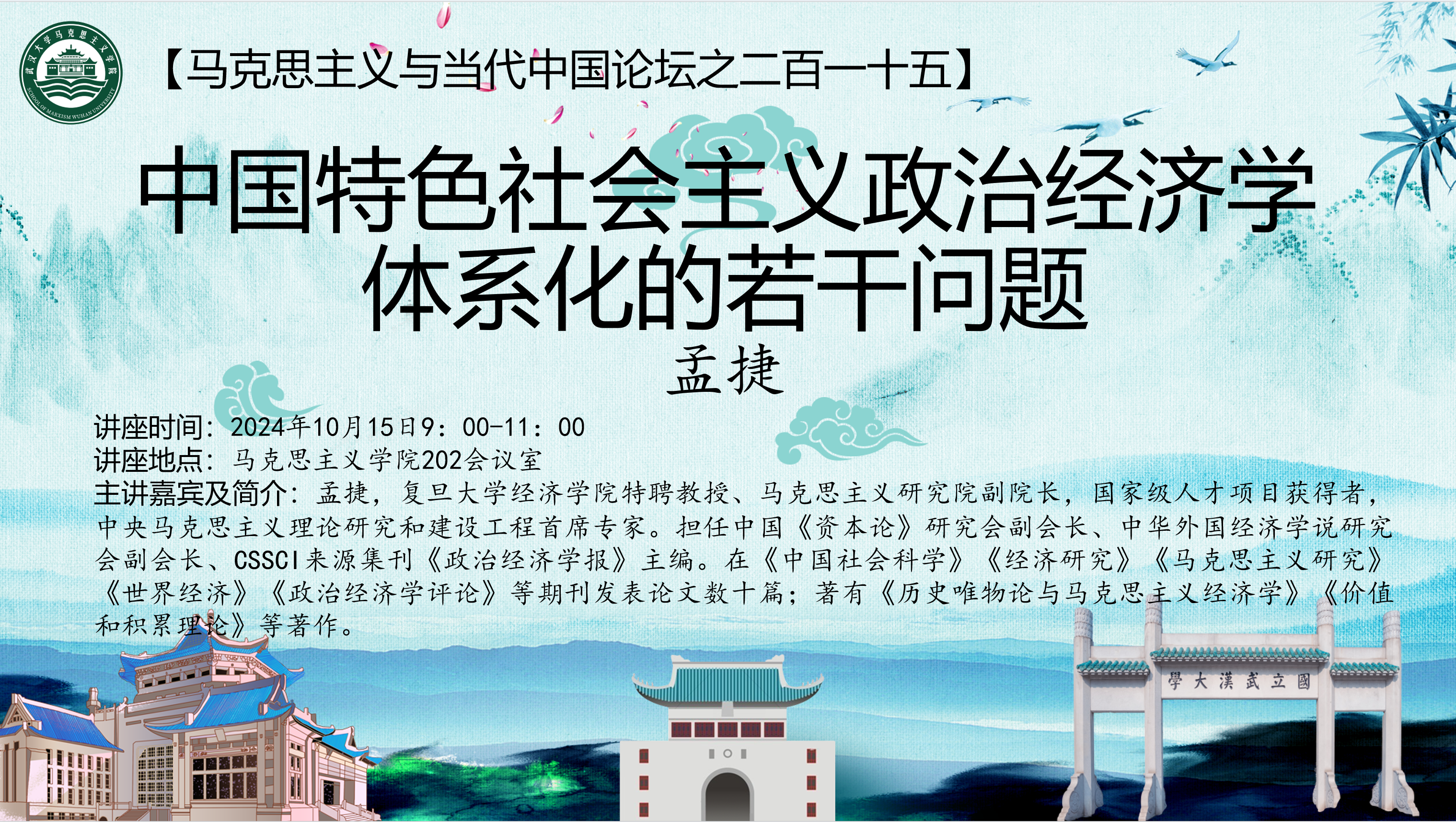 讲座主题:中国特色社会主义政治经济学体系化的若干问题