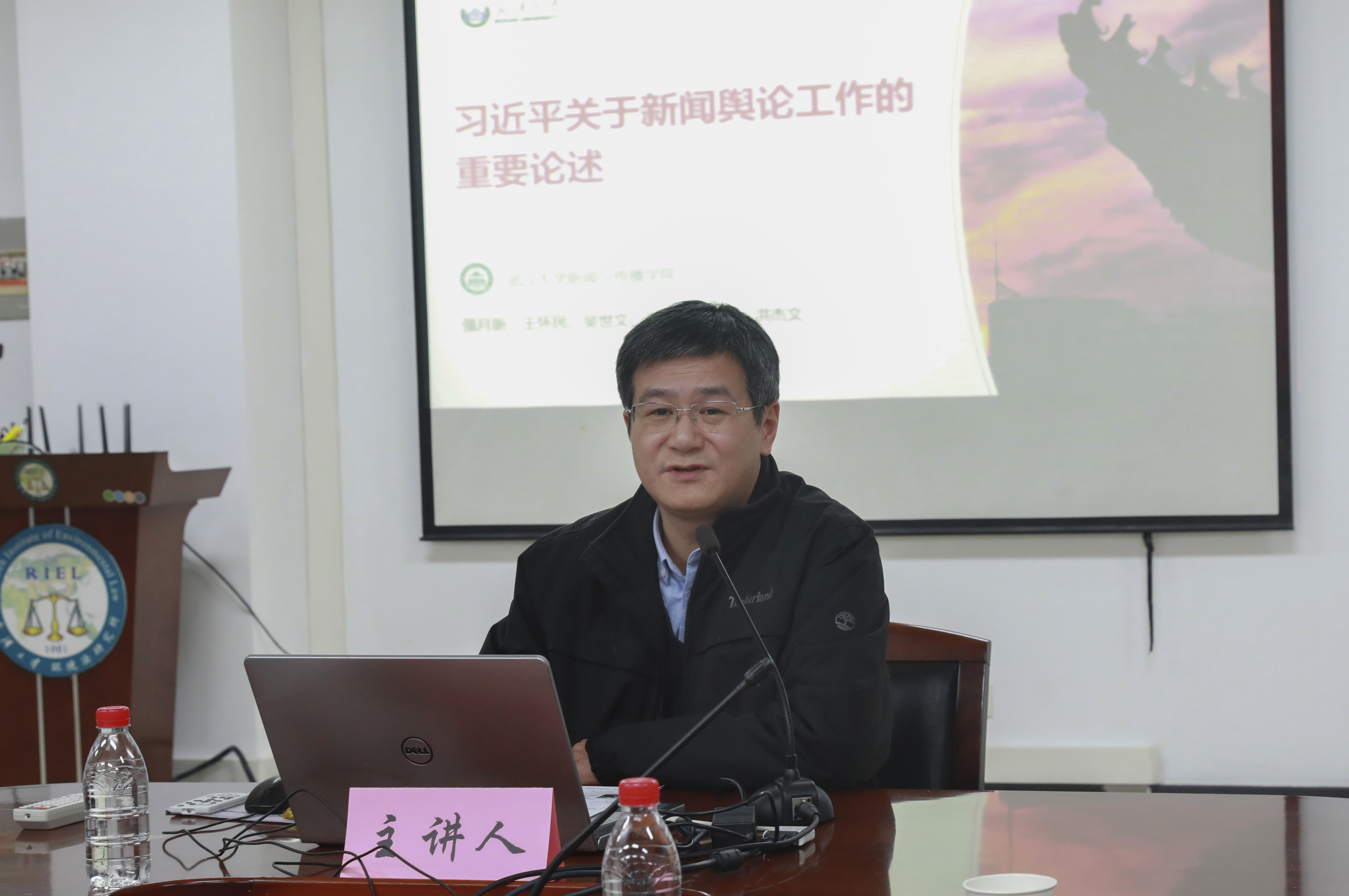 洪杰文汇报了专题团队、学情分析、教学目标、教学内容、课后思考和参考书目,并重点从时代背景、主要内容、创新发展三个维度阐述了习近平关于新闻舆论工作的重要论述。