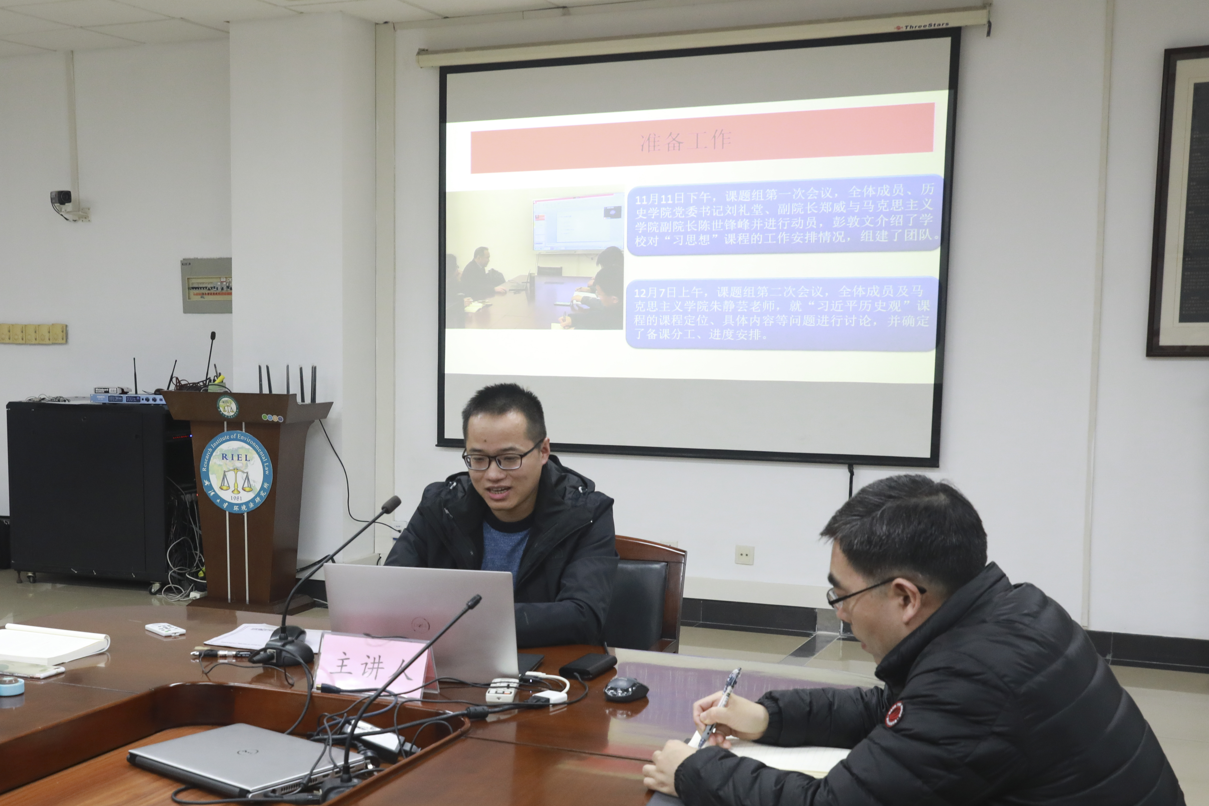 吴文浩从学习资料、课程定位、重点难点、内容安排等几个方面进行了说课汇报。教学内容方面围绕习近平历史观的必要性、习近平历史观的基本内容、习近平历史观的时代意义三个方面进行阐述,对历史虚无主义的表现及根源进行了讨论。