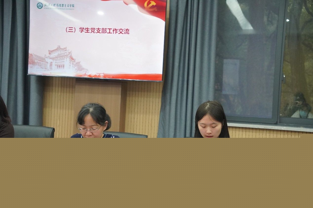 会议第三项,参会支书就本学期支部工作开展情况进行经验分享和交流。