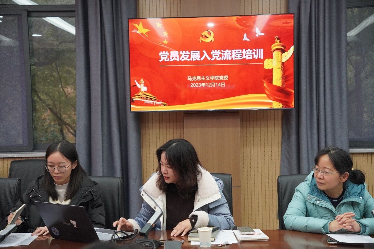 首先,学院组织员任竹芸做学生党支部工作培训。发展党员工作是党的基层组织建设中一项经常性的重要工作,任老师围绕入党条件、入党申请书撰写及党员发展流程等方面展开细致讲解,针对发展流程中出现的具体情况进行复盘总结,强调要坚持好“控制总量、优化结构、提高质量、发挥作用”的发展党员工作总要求,提醒支部书记要“看一遍,谈一次,记一笔”,多与入党积极分子和发展对象交流,切实发挥入党介绍人的关键作用。此外,任老师还就党建与业务相融合事项展开部署,希望各支部积极推进落实。